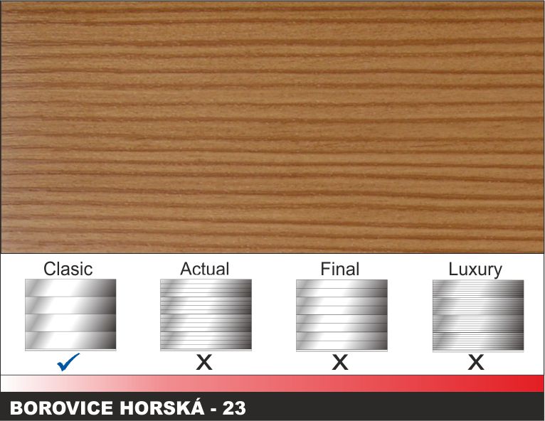 - PANEL: hladký povrch, vzor panelu CLASIC